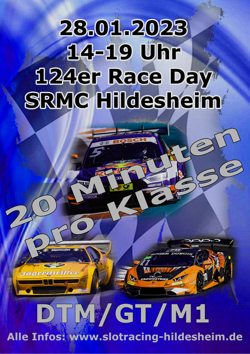 Am 29.12.2022 ist unser letztes Öffentliche Rennen, das Carrera 124er M1 3. Stunden Digitalrennen. Danach Startet die Saison 2023 mit dem ersten Carrera 132er Analog-Rennen (Evolution) mit den Klassen DTM/GT und Revoslot GT am 07.01.2023.